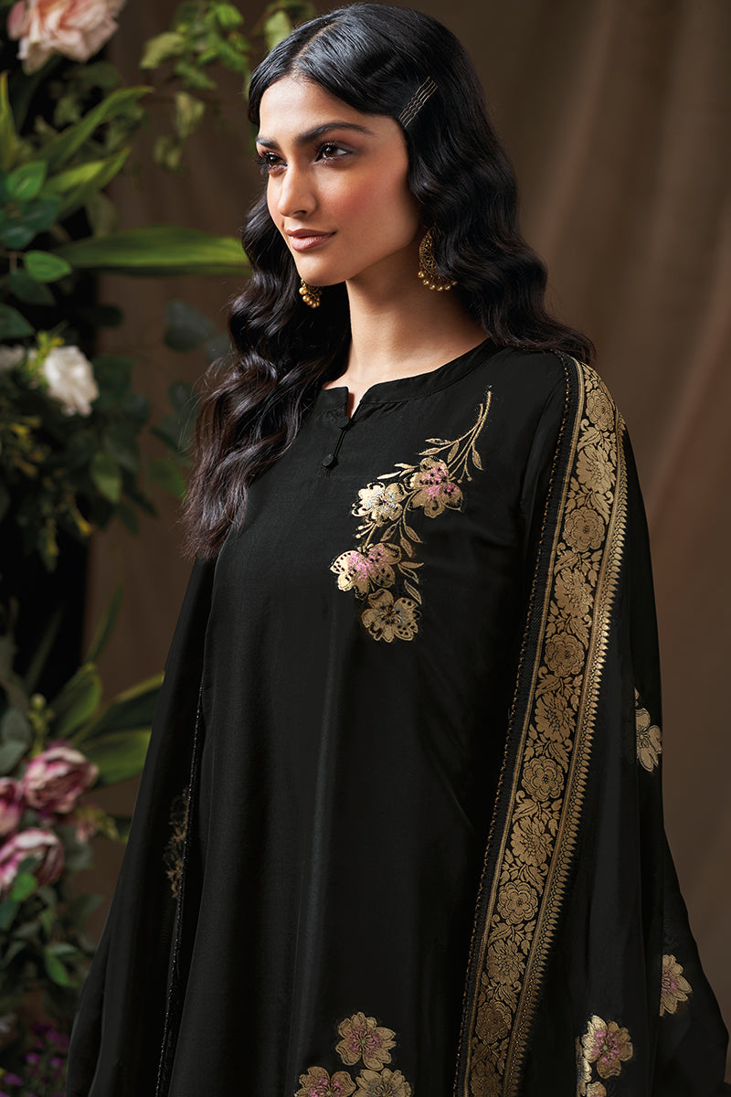Top: Premium viscose woven silk meena jacquard with handwork and lace on sleeves