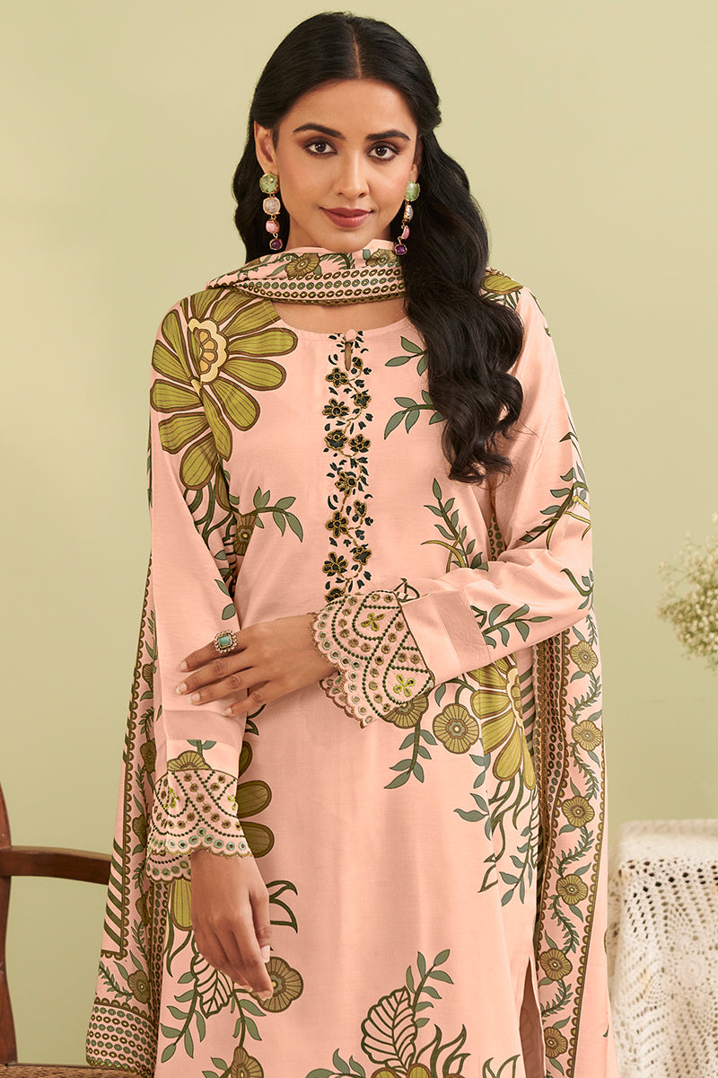 Premium Pure Monga Silk Digital Print Handwork Salwar Suit